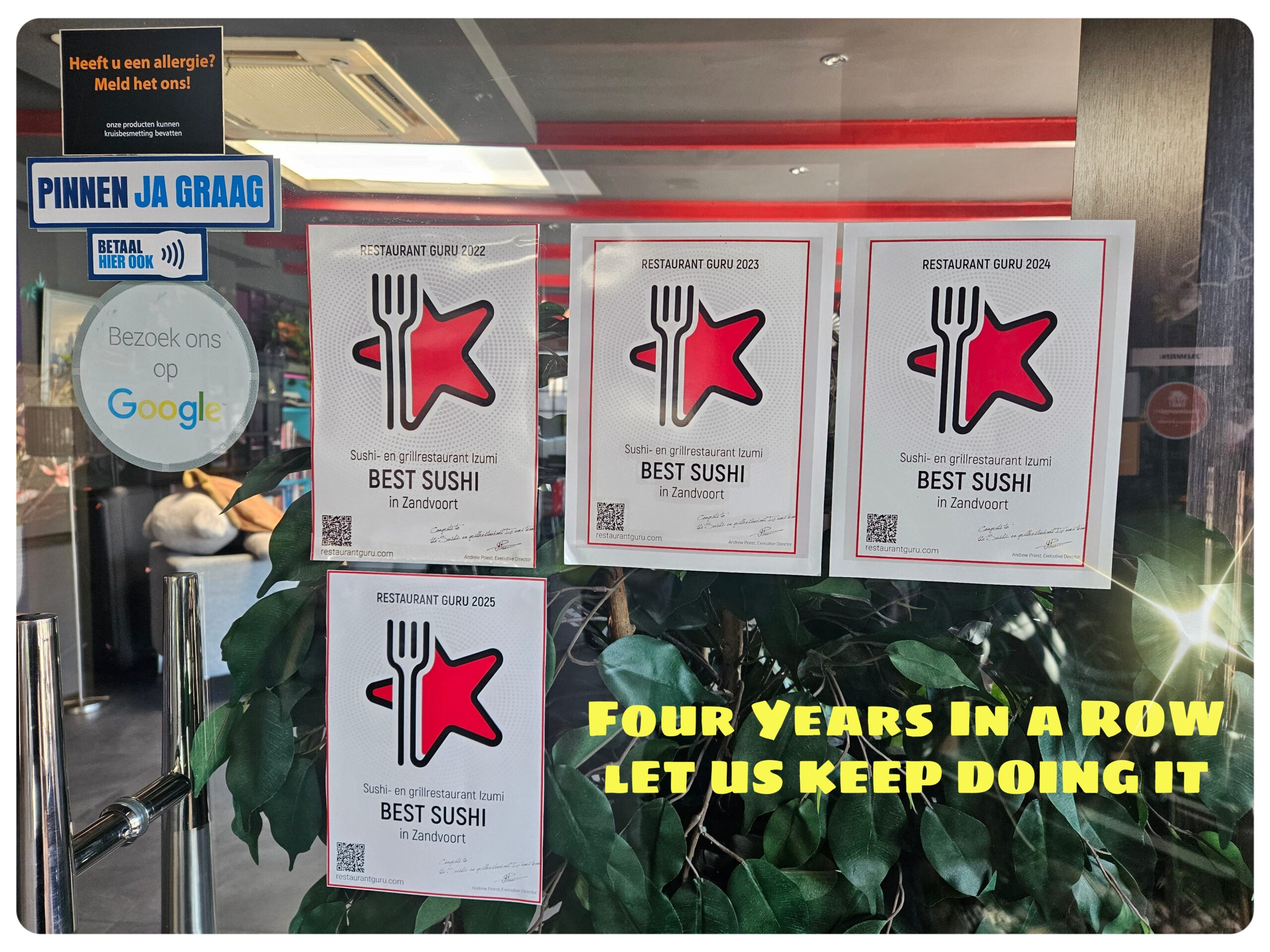 Whatsapp: 0031-6-34833201 Wij zijn IZUMI in Zandvoort, als je wil reserveren in ander IZUMI restaurant graag daar bellen A.U.B- U kunt hier online reserveren. Komt u met 6 of meer personen, dan moet u minimaal 1 dag van te voren reserveren.
